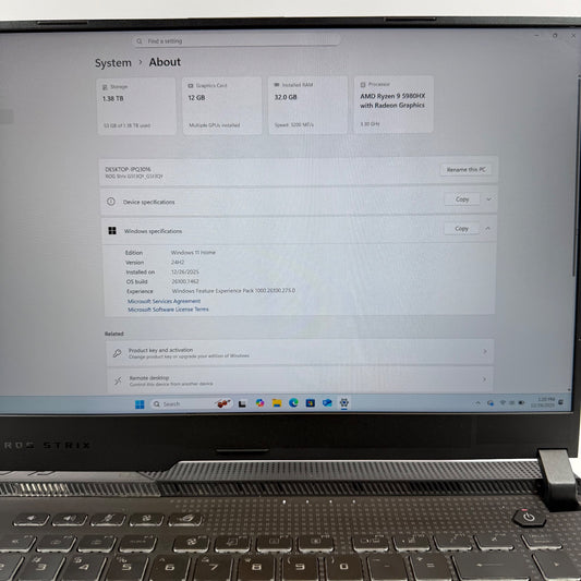 Asus ROG Strix G513QY 15.6" Ryzen 9 5980HX 32GB RAM 1TB SSD Radeon RX 6800M